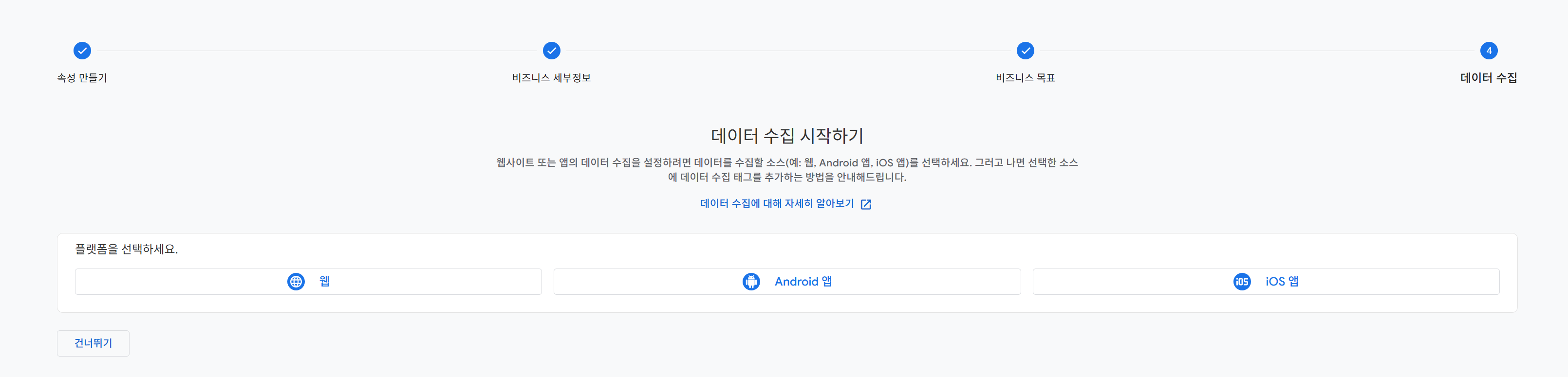 위의 화면에서 '웹' 플랫폼을 선택